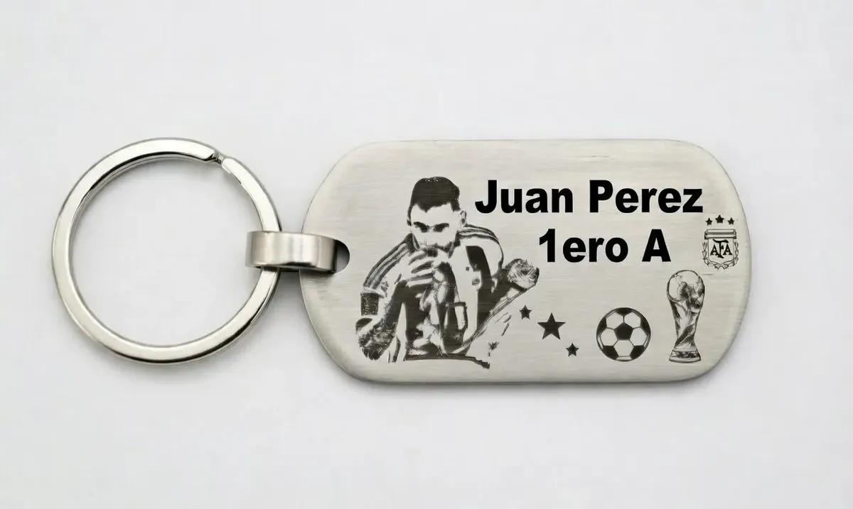 Placa identificatoria escolar de acero inoxidable personalizada, ideal para mochilas, cartucheras, bolsos y útiles escolares. Fabricada en acero pulido con grabado de alta definición. El grabado es permanente, no se borra ni se desgasta con el uso.