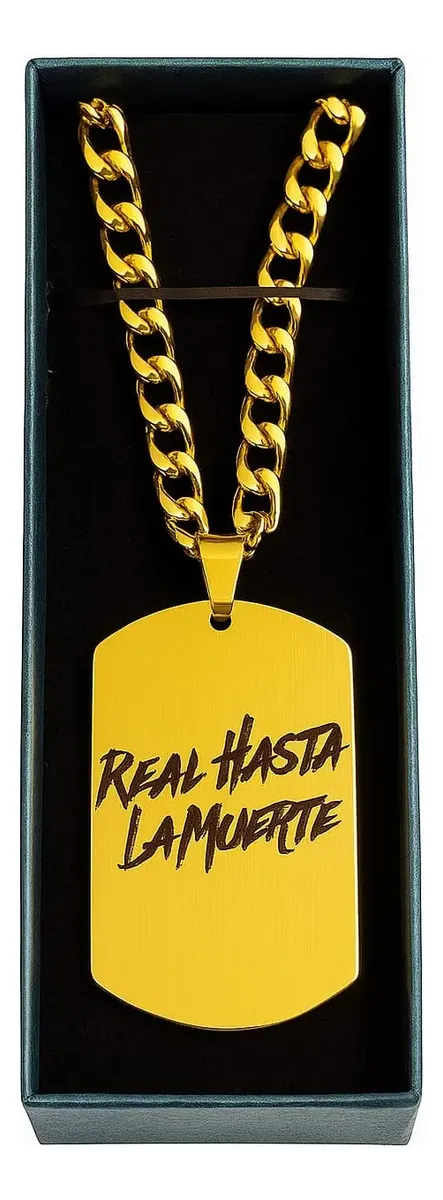 Espectacular Collar dije " Real hasta la muerte " Medida del dije 5 x 3cm Largo de cadena 60cm