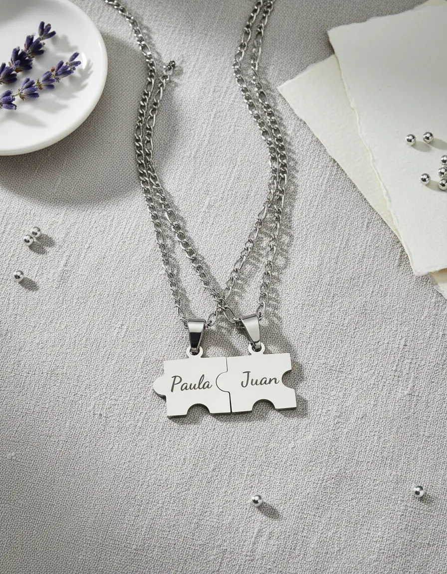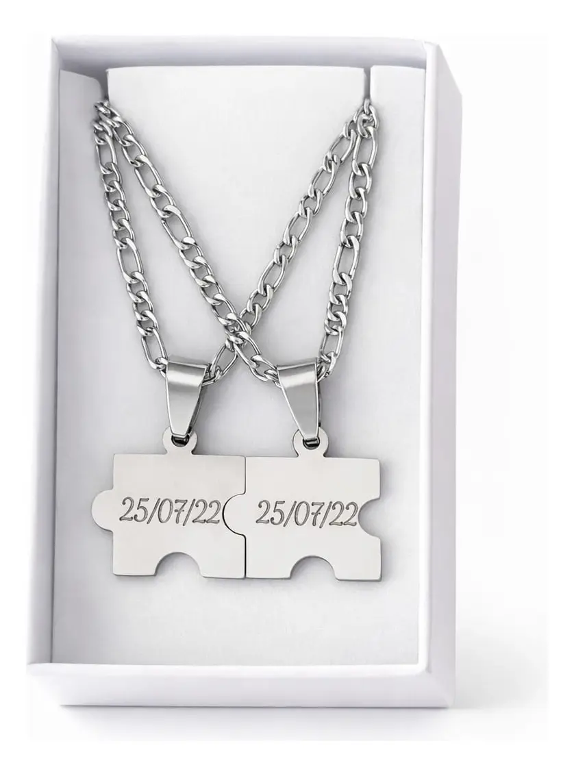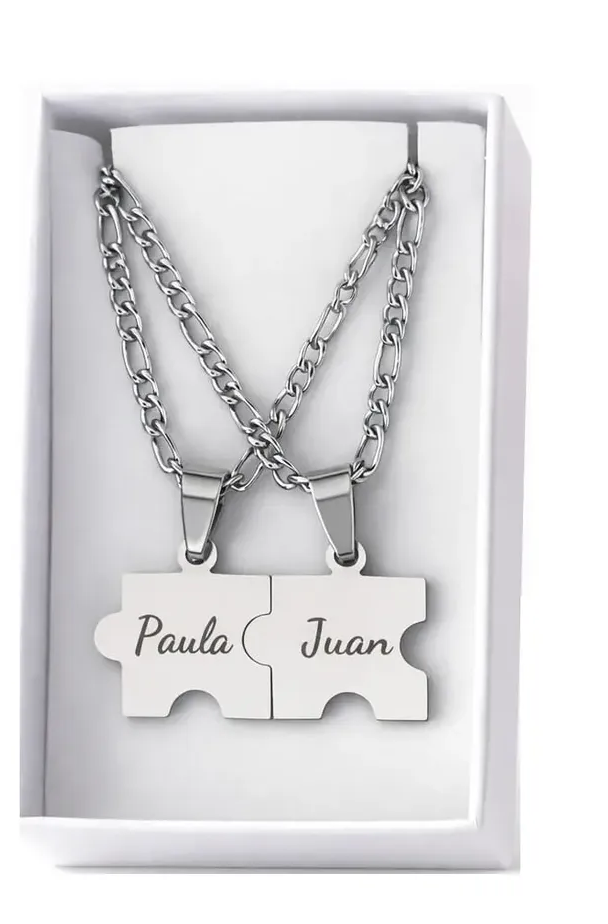 Cadenas con Increible par de Dijes Rompecabezas Personalizado de Acero Quirurgico 1.8 cm x 1.8 cm c/u