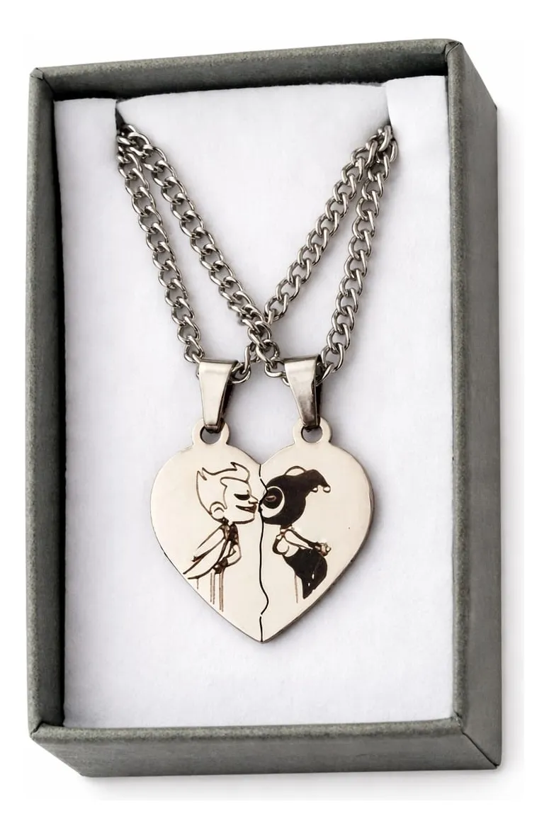 Cadenas con Increible par de Dijes de corazón partido Personalizado de Acero Quirurgico 2.5cm x 2.5 cm