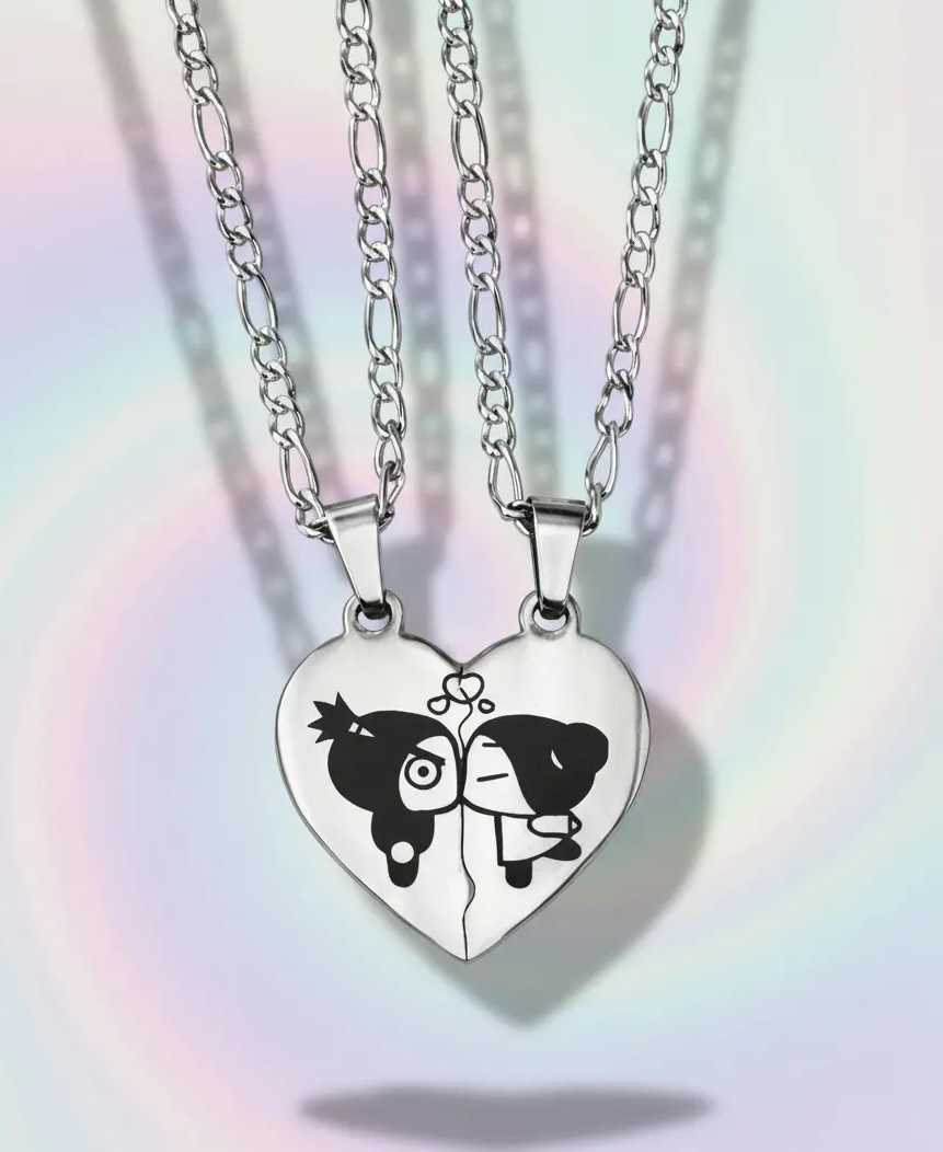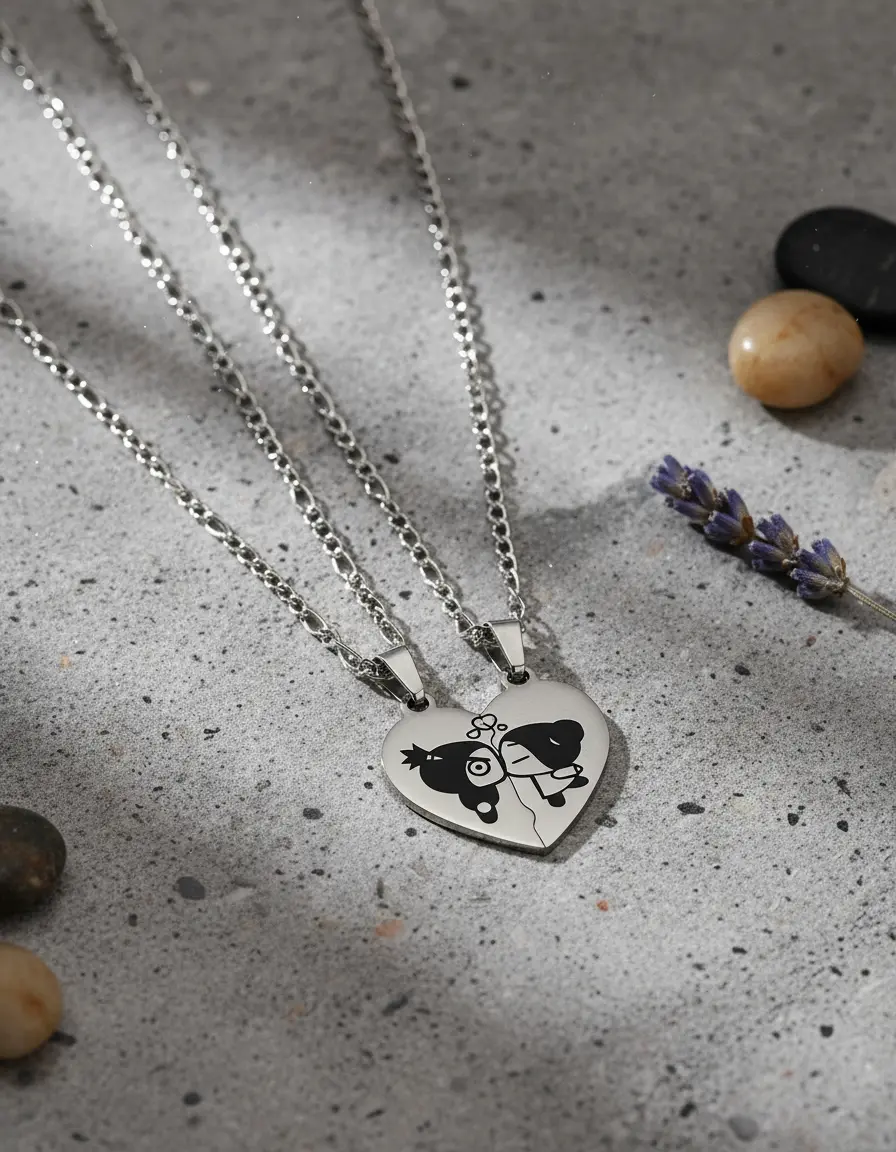Cadenas con Increible par de Dijes de corazón partido Personalizado de Acero Quirurgico 2.5cm x 2.5 cm