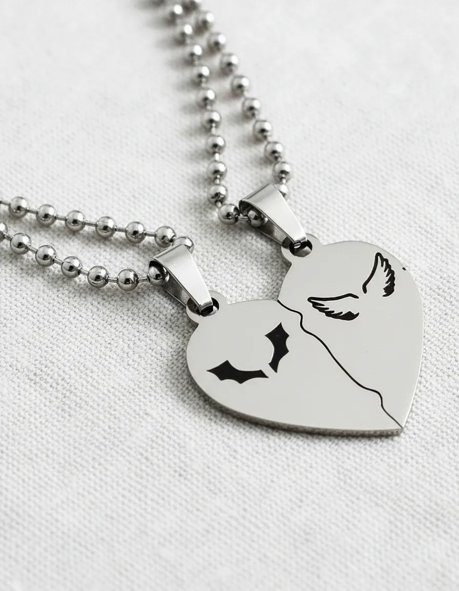 Cadenas con Increible par de Dijes de corazón partido modelo Alas de Acero Quirurgico 2.5cm x 2.5 cm Con grabado LÁSER DE FIBRA (TECNOLOGÍA DE ÚLTIMA GENERACIÓN). * MÁXIMA NITIDEZ Y CALIDAD * NO SE BORRA * NO SE OXIDA * No es grabado con CO2 (el grabado CO2 utiliza pintura que se borra con el paso del tiempo). INCLUYE: 1 Dije doble (se divide) + 2 Cadenas 60cm bolitas o 55cm clásica (ambas de acero quirúrgico) + Estuche + 1 Grabado por dije. ************************************************************ ==> Nuestra Reputación 100% Positiva >>>>>>>>>>>>>>>>>>>>>>>>>>>>>>>>>>>>>>>>>>>