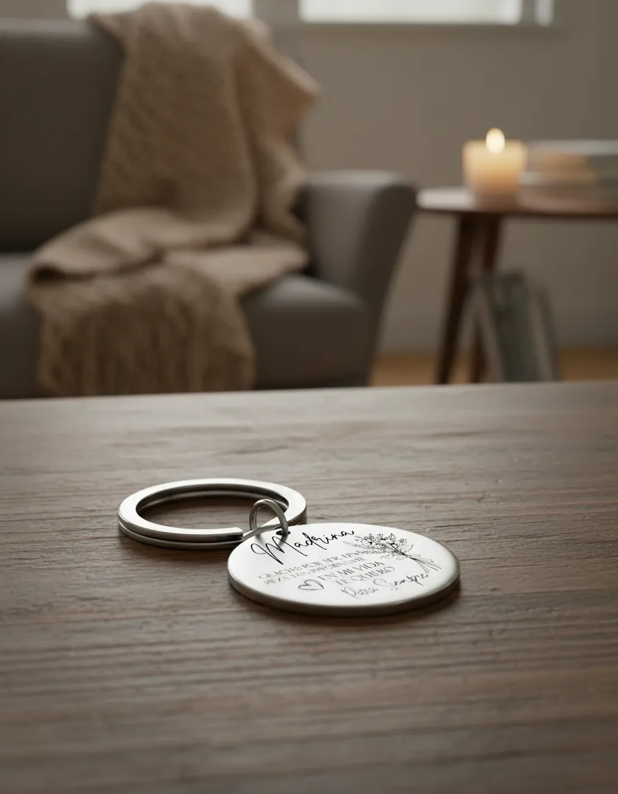 Medidas 3 cm de diámetro Material: Acero quirúrgico 316L, resistente al agua, al paso del tiempo y sin perder brillo. Grabado láser HD permanente (no se borra ni se desgasta). Incluye argolla y cadena reforzada de acero, lista para usar o regalar.