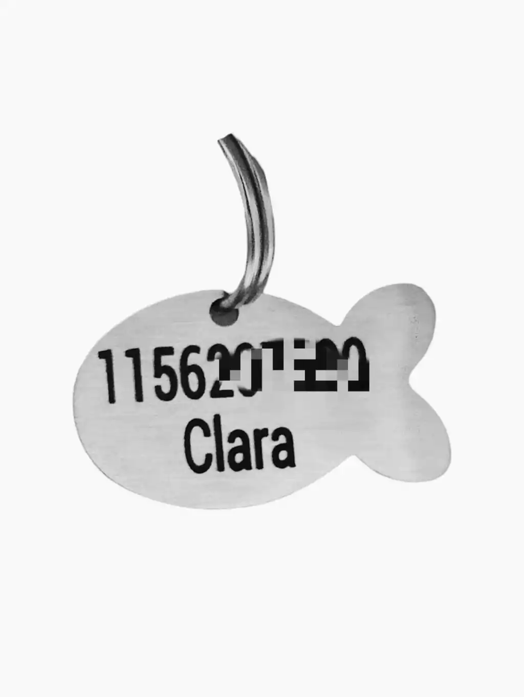 Chapitas Identificatorias de Acero Quirúrgico para Mascotas - Modelo Pez 2.5 cm x 1.6 cm