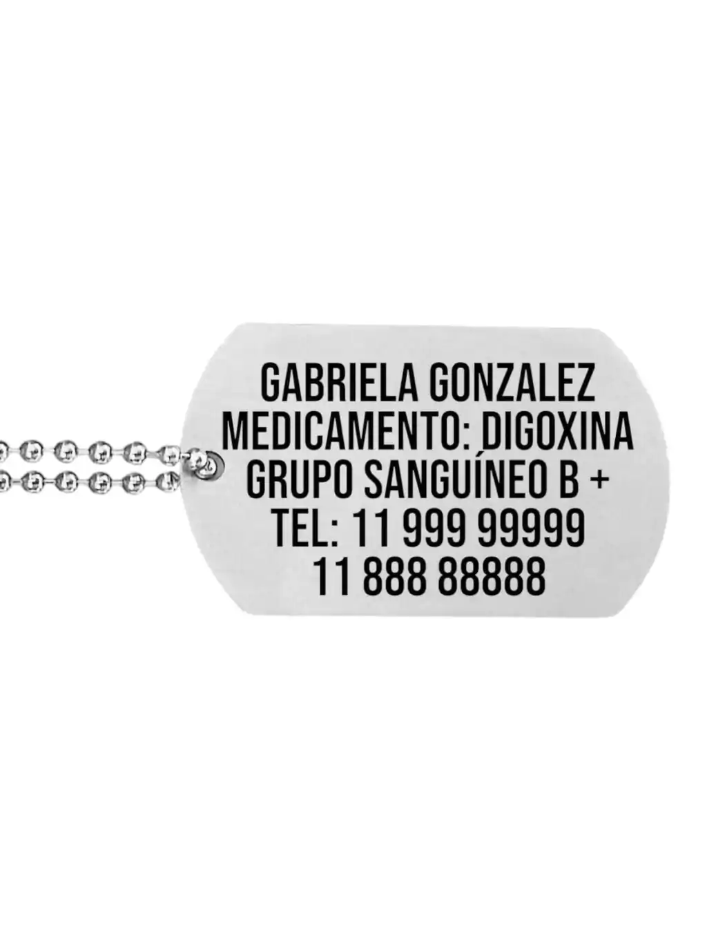 ¡Asegúrate de que tu salud esté siempre protegida con nuestro elegante dije identificatorio! Este dije de acero quirúrgico, acompañado de una resistente cadena, es la solución ideal para quienes necesitan llevar información importante sobre su salud.